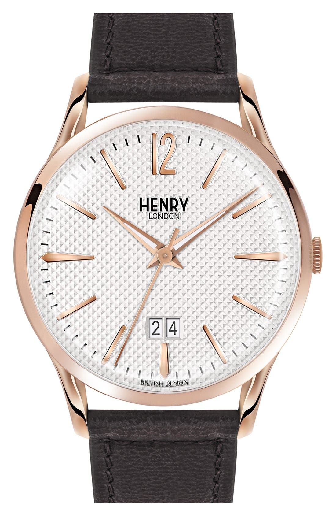 Henry London 'Richmond' Analog Leather Strap Watch, 41mm Nordstrom